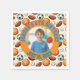 Add a fun and personal touch to your party table with these custom birthday napkins featuring a playful pattern of sports balls and personalized with the birthday child’s photo, name and age number. The bright, energetic design is perfect for kids who love basketball, soccer, football, and baseball.