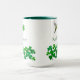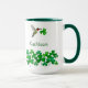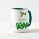 Cute custom St. Patrick's Day mug featuring a hand-painted ruby-throated hummingbird carrying a shamrock.