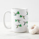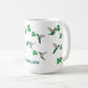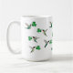 Cute mug with hand-painted ruby-throated hummingbirds carrying shamrocks. Just add your name!