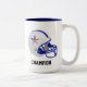 Benutzerdefinierter Stern auf blau-weiß American Football Helm auf Weiß Große Tasse. Bild und Text sind personalisiert. Elegantes, einfaches Design für Sportliebhaber!