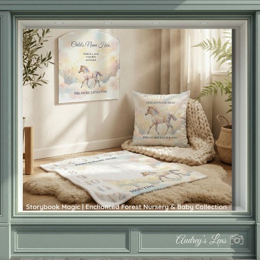 "Capture every magical moment of your baby’s first year with this Storybook Magic Milestone Blanket. Featuring a whimsical enchanted forest design, this soft fleece blanket is the perfect backdrop for monthly photo updates. Personalize it with your little character's name to create a one-of-a-kind keepsake. Ideal for baby shower gifts and storybook-themed nurseries." I have chosen the 50" x 60" larger size blanket for longevity. It grows with the baby through the whole first year.