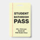 Dieses moderne Studentenbadezimmerpass-Abzeichen ist mit einem ausgekleideten Papierhintergrundstück gestaltet und bietet ein gepflegtes Aussehen für jede Schule. Passen Sie es mit dem Namen des Lehrers, der Klassenzimmer und der Klassenebene an. Dieser langlebige Pass ist ideal für Schulen und Lehrer und garantiert den Schülern einen eindeutigen und erkennbaren Ausweis beim verlass des Klassenzimmers.
