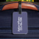 Personalize your travel gear with these vibrant watercolor floral luggage tags. The design showcases a bright arrangement of sunflowers and lavender sprigs against a crisp white and deep navy contrast. These durable tags are ideal for identifying your suitcase on a summer honeymoon or gifting to your bridal party.