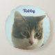 Custom tabby cat photo on light blue Rouns Pillow. Ideal for everyone! This cute cat can also be replaced with your favorite photo! Text only on the front side. Use custom PNG picture if you want to replace cat.