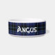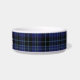 Traditioneller, blauer und schwarzer Clarkklan-Tartan kariert um diese weiße Keramik Hundeschüssel. Benutzerdefinierter weißer Text kann mit dem Namen Ihres Tieres personalisiert werden. Eine tolle Geschenkidee für einen neuen Hundebesitzer.