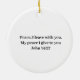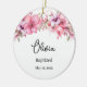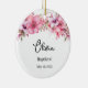 Dieses Keramik-Ornament wird mit einem schönen Blumendruck und einem individuelle Name und Datum ihrer Taufe gezeigt. Die Rückseite hat eine Schrift. Passen Sie dieses Element an, und ändern Sie den Beispieltext in Ihren Text. Lizenziertes Bild