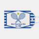 Dieses elegante, moderne Country Club Geschenktag bietet Tennisschläger und einen Ball über Ihrem Tennisteam-Namen und etablierten Datum. Blaue und weiße gestreifte Etiketten für Ihre Tennisspieler und Country Club Mitglieder.