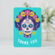 Custom Text Bright Floral Sugar Skull Girl Dankeskarte