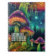 Immerse yourself in a whimsical, otherworldly forest with this vibrant psychedelic mushroom design. The enchanting glow of bioluminescent fungi illuminates a mysterious night scene, complete with towering mushroom caps and lush, alien-like foliage. This design evokes a sense of wonder and adventure, perfect for those who appreciate the fantastical and surreal. Whether you're journaling your dreams, sketching fantastical creatures, or simply jotting down notes, let this magical forest inspire your creativity. The intricate details and vivid colors of the glowing mushrooms and deep forest background create a truly captivating visual experience. Add a touch of enchantment to your everyday tasks with this unique and artistic spiral notebook.