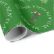 Dieses Packpapier hat ein sportliches Thema: Der Piktogramm-Läufer trägt eine Weihnachtsmannmütze und trägt ein festliches Paket. Der Hintergrund ist dunkel und grün, und es gibt auch goldfarbene Schneeflocken. Der Text ist in weiß und kann für Ihre bevorzugte Begrüßung bearbeitet werden: "MERRY CHRISTMAS HAPPY NEW YEAR".