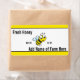 Cheerful honeybee is in the center of this honey jar label. The text is black and you can change the text to create your unique product label