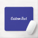 This blue mouse pad has text in white script. The text can be edited to show a custom message or deleted