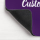 This dark purple mouse pad has text in white script. The text can be edited to show a custom message or deleted