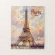 Custom Text Watercolor Eiffel Tower Sunset Travel Puzzle