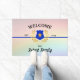 Custom Thin Blue Line Polizei Abzeichen Willkommen Doormat. Großes polizeiliches Abzeichen und dünne blaue Linie für diese lustige Begrüßungstat.