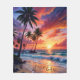 Erleben Sie den Zauber eines tropischen Paradieses mit dieser lebhaften Sonnenuntergang-Szene, die von Palmen, Wellen und einem leuchtenden Himmel in Orange, lila und Rosa gehalten wird. Dieses lebendige Küstendesign eignet sich perfekt für Strandliebhaber, tropische Reisende, Sonnenuntergang und alle, die vom Meer träumen. Ein atemberaubendes Geschenk, das Wärme und Freude mit individuellem Namen/Monogramm im Sand oder löschen für nur Illustration.