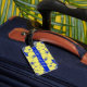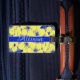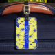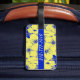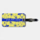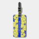 Ein schöner und einer von einer Art Gepäckanhänger mit tropisch gelben Blumen vor einem kobaltblauen Hintergrund. Bereit, um mit Ihrem Namen auf der Vorderseite und Telefonnummer auf der Rückseite angepasst zu werden.