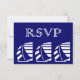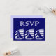 Eine benutzerdefinierte RSVP-Karte mit Deko-Buchstaben vorne und hinten mit einer hübschen blauen und weißen Abbildung eines Segelbootes, das über das Wasser segelt.