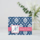 Custom UAWG Pink Navy Damask Hochzeitskarte Einladungspostkarte