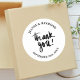 Verbessern Sie Ihre Gastgeschenke Hochzeiten mit unserem "Custom Danke Chic Calligraphy Gastgeschenk Hochzeit Classic Round Sticker". Mit eleganter Kalligraphie sind diese Aufkleber mit Ihren Namen und Ihrem Hochzeitstermin personalisiert. Sie sind perfekt zum Abdichten von Umschlägen, Dekorieren von Geschenken oder zum Dekorieren von Gefälligkeiten geeignet und bieten eine stilvolle Möglichkeit, Ihren Gästen Dankbarkeit auszudrücken. Das schicke Design und die aufwändige Schrift verleihen jedem Hochzeitsthema eine Touch von Eleganz, sodass jeder Aufkleber zu einem wertvollen Memto Ihres unvergesslichen Tages wird.