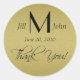 Elegante Schwarz und Weiß Hochzeit Danke Sticker in einem schönen Script-Schriftart. Ideal für Ihre Gastgeschenke Hochzeiten. Design von Elke Clarke ©. Abrufbar unter www.zazzle.com/epclarke. Passen Sie Ihre Braut- und Bräutigamen an, Vorname und Hochzeitstermin.