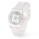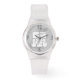 Maßgeschneidertes weißes Ideogramm der Ratte auf einer niedlichen "papiergeschnittenen" Abbildung als Hintergrund. Sie können das Jahr und die Farbe des Ideogramms ganz einfach ändern, indem Sie auf die Schaltfläche Anpassen klicken. Design auf Silicone Strap Clear Uhr mit jungen Stilnummern. Ideal für Chinesisches Neujahr der Ratte oder Geburtstag (Menschen geboren im Rattenjahr).
