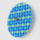 Custom Wall Clock: Blue Moons on Grid Pattern Große Wanduhr