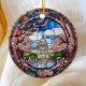 Niedliche Imitate Buntglas Washington DC rosa Frühlingskirschenszene, personalisierbare Date Reise Souvenir. Ideal für Weihnachten- und Familienurlaub, oder Flitterwochen Geschenk. Anpassung: Change Caption und Jahr, um es einzigartig zu machen.