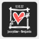 Custom Wedding Liebe Herz Schwarz & Rot Quadratischer Aufkleber