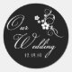 Der individuell anpassbare Aufkleber für eine Hochzeit kann auch auf einem Save the Date verwendet werden.