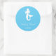 Dieser runde Aufkleber ist in einer blauen Farbe mit Meerjungabdruck dargestellt. Personalisieren Sie diesen Aufkleber, indem Sie den Text in Ihren Namen und das Datum mit dieser Vorlage ändern.