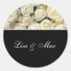 Maßgeschneiderter, runder Aufkleber in Schwarz mit einem Foto aus hübschen Rosen. Passen Sie dieses Objekt an und ändern Sie die Namen zu Ihrem, fügen Sie das Datum hinzu oder kaufen Sie, wie es ist.