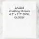 Maßgeschneiderte Hochzeitskleber 4.5" x 2.7" OVAL GLOSSY, 4 Aufkleber pro Blatt, säurefreies Papier, höchster Qualität, Vollfarbendruck, Vollblutdruck, kratzfeste Vorderseite, einfaches Abziehen und Zurückkleben. Matte oder glänzende Oberfläche. 7 Formoptionen: rund, quadratisch, oval, rechteckig, dreieckig, sternförmig und herzförmig. Entwerfen Sie Ihre eigenen Personalisierten Hochzeitseinladungen & Essentials, inklusive Umschlagbänder, Porto-Briefmarke, Papierservietten, Buttons, Buttone, Aufkleber, Autoaufkleber, Menürackkarten u.v.m.