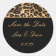 Dieser runde Hochzeitsaufkleber Save the Date ist in einem schwarzen Leopardenprint dargestellt. Personalisieren Sie diesen Aufkleber mit Ihren Namen und Datum mit dieser Vorlage. Es wird eine geringe Größe angezeigt.