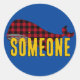 Aufkleber / Geschenketiketten: Rustikales Styling mit individuelle Name "Someone" unterstrichen Ocean Blue mit Whale fabrick rot und schwarz Büffel karierte Muster.