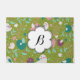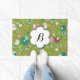 Hübsch, bunt, niedlich, skurril beschreibt unsere Whimsy Tweety Birds on Vines Design Doormat. Kleine, aquamarine, weiße und rosafarbene Wasserweine mit kleinen, weißen Blume, rosa Wirbel, alles auf grünem Hintergrund. Diese lustige, farbenfrohe, skurrile Türmatte verfügt über ein weißes Blume-Banner, das Sie einfach mit Ihrem Monogramm-Initial personalisieren können!