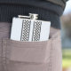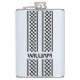 Klassisches schwarzes Doppelrennen Streifen Muster Design auf einem dunkeldunkelblauen Hintergrund. Anpassen mit Namen, Monogramm, Initialen oder (begrenztem) Text Ihrer Wahl. Entworfen für den stilvollen Rennwagensport, Rennfan, den Liebhaber oder Besitzer von Oldtimer, Muskelwagen, frisierter Autos, Autoshows