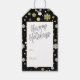 Das elegante Geschenketikett mit einem hübschen und modernen Script-Schriftart auf einer angesagten Winterferien-Saison mit weißen und goldfarbenen Schneeflocken und Polka-Punktmuster auf schwarzem Hintergrund. Mit der Option, um mit (begrenztem) Text Ihrer Wahl zu personalisieren oder anzupassen. Verziertes, elegantes, stilvolles und eklektisches Dezember Holiday Design für das extravagante künstlerische angesagte Handwerk, Vintage Retro-Kunststil oder abstrakte geometrische Motiv Liebhaber. Erhältlich bei einer Vielzahl moderner Büroprodukte. B. Adressetiketten, Verpackungen und Papiertaschentücher, Geschenktaschen, Beutel und Geschenkschachteln, Aufkleber, Bänder, Notebooks, Bindemittel, Schreibwaren und Umschläge.