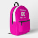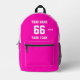 Create your own custom white cute pink Sport Football Style Printed Backpack with Name, Number, Team Name, Slogan and Year. Personalize this simple classic Printed Backpack template with your custom message, name, team name and year. Easily personalize it for a cool sport keepsake. Create your unique personalized gift for coach, girl's birthday, football player, teammates and friends.
