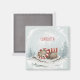 Add a touch of seasonal charm to your fridge or workspace with this personalized magnet featuring a peaceful illustration of a bear sleeping in the snow, wrapped in a red striped scarf. The snowy forest background and customizable name above the bear make it a heartwarming accent for everyday use. Part of the Woodland Friends collection, this design is perfect for anyone who loves gentle, storybook-style art and cozy winter details. Personalize it to create a thoughtful gift or a whimsical touch for your home.