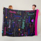 The world's coziest and most personal gift! This custom word cloud blanket is made of high-quality sherpa fleece. It features a beautiful neon design with inspirational words like "Laughter," "Family," and "Strength." Perfect for home decor, gifting, or snuggling on the couch. Order now for a touch of warmth and personality!