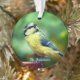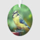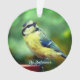 Foto, gelb geröstetes blaues Tittenvogel- personalisiert Ornament. Ideal für alle! Text auf einem halbtransparenten Hintergrund nur auf der Vorderseite!