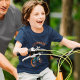 The "CYCOPATH" message on this graphic tee is ready to be customized with any message you like. The orange lettering appears above my illustration of a werewolf skeleton riding a BMX bike. The graphic is in ivory, orange and aqua blue.