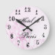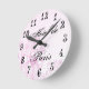 Give a flair to your home decor with our customizable French Country wall clock. Leave it as is - with the words "Hotel von Paris" und the pink floral background, or change the words and background to your liking.