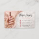 A beautifully designed business card template created for nail technicians, featuring a stylish blend of soft florals, beauty‑themed imagery, and modern layout elements. The design includes a decorative front with beauty‑inspired visuals and a clean, minimal back for essential details. All text, colors, and information are fully customizable to suit any brand or aesthetic.