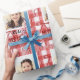 Customizable Photo & Name Christmas Check Ribbon Geschenkpapier