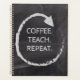 Introducing this humorous customizable planner inspired by teachers and featuring a chalkboard design with the words "Coffee, Teach, Repeat"! Elevate your daily routine with this charming organizational accessory that pays homage to the dedication and passion of teachers. If you choose, the three words can be changed to your choice of three words using the editing tool.