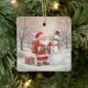 Capture the magic of Christmas with this absolutely adorable square ceramic ornament! This unique design features Santa Claus dressed in his classic red suit, wearing a backpack and holding a vintage camera to take a selfie with his smiling snowman friend. Set in a charming, snowy winter landscape, this whimsical scene is a perfect mashup of holiday tradition and modern fun.