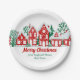 This cute custom real estate holiday paper plate is perfect for realty business marketing. Customize these Merry Christmas party plates with your company name under the red houses covered in winter snow and lined with festive green trees.
