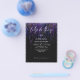 Ultra-Affordable Wedding Einladungen müssen nicht langweilig sein - kühne lila, funkelnd Garland kaskadiert die Seite hinunter, in handgeschriebener Kalligrafie heißt "Lass uns das machen" - die Initialen des Paars oben - die Erholung des Textes ist einfach und sauber - alles auf schwarzem Hintergrund. Elegante Hochzeitskunst. Entwickelt, um schnell und einfach an Ihre Veranstaltungsdetails angepasst zu werden. Bitte beachten Sie, dass diese Haushaltseinladung auf Flyer-Papier steht und sehr dünn ist, aber trotzdem sehr schön. Umschläge sind nicht enthalten. Bitte kaufen Sie Ihre eigenen Umschläge in der Größe A6. ©WhimsicalArtwork™